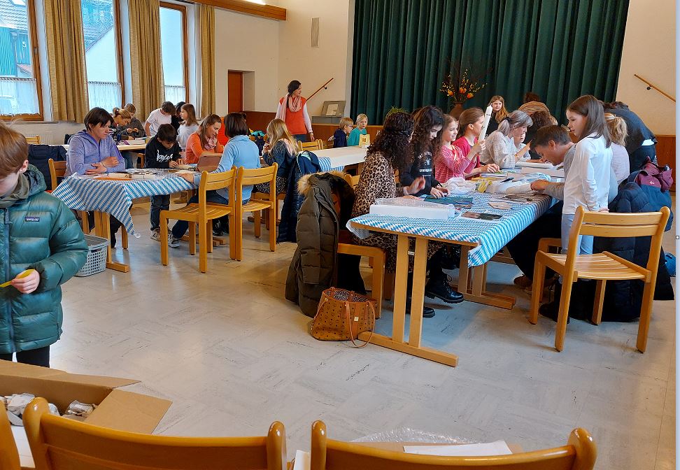 Die Erstkommunionkinder haben im Pfarrheim in Utting zusammen mit Eltern und Helfern ihre Erstkommunionkerzen gestaltet.