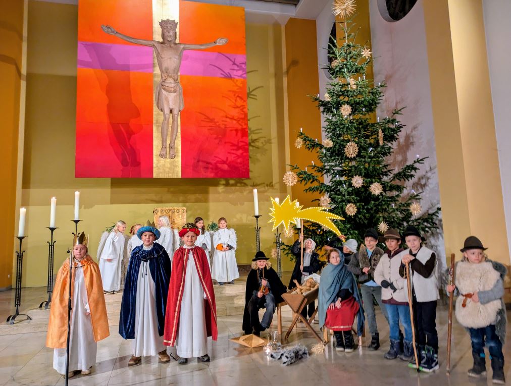 Die diesjährige Kinderchristmette in der Kirche Hl. Kreuz war wieder eine wunderschöne Einstimmung auf den Heiligen Abend. Viele Kinder engagierten sich beim Krippenspiel und der Jugendchor der Pfarreiengemeinschaft gestaltete die Kinderchristmette musikalisch. Vielen Dank an alle, die diese Kindermette mit dem Krippenspiel möglich gemacht haben.