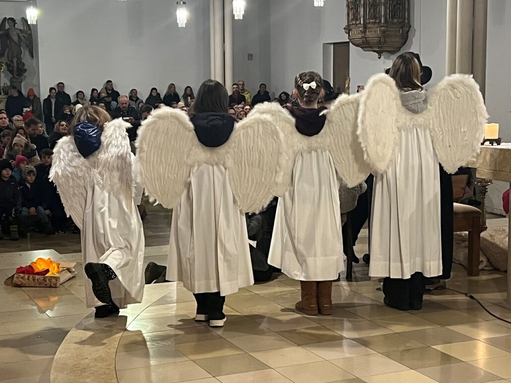 “ Fürchtet Euch nicht, denn wir verkünden Euch eine große Freude”. Diese frohe Botschaft brachten der Kinderchor der Pfarreiengemeinschaft und Kinder der Pfarrei in einem lebendig gestalteten Krippenspiel den Gottesdienstbesuchern von ganz klein bis groß nahe. Danke den engagierten Eltern und Anna Schneider für das Einstudieren der Texte und Lieder. Danke den Kindern!