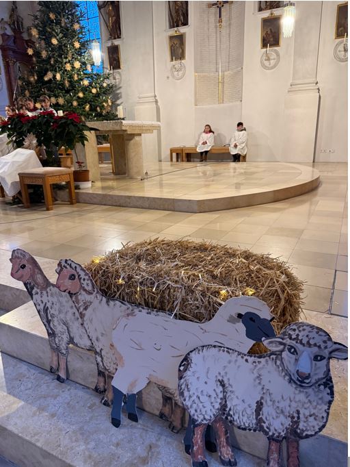„Kommt lasst Euch zeigen, was heute geschehen ist!“ Dazu waren wir alle in der Kinderchristmette in der Kirche Maria Heimsuchung in Utting von den Sängerinnen des Kinder- und Jugendchors und jungen Darstellern und Darstellerinnen des Krippenspiels eingeladen. Dank an die Leiterin des Chors Anna Schneider, den Eltern und der Gemeindereferentin Frau Kast für ihr Engagement bei den Vorbereitungen.
