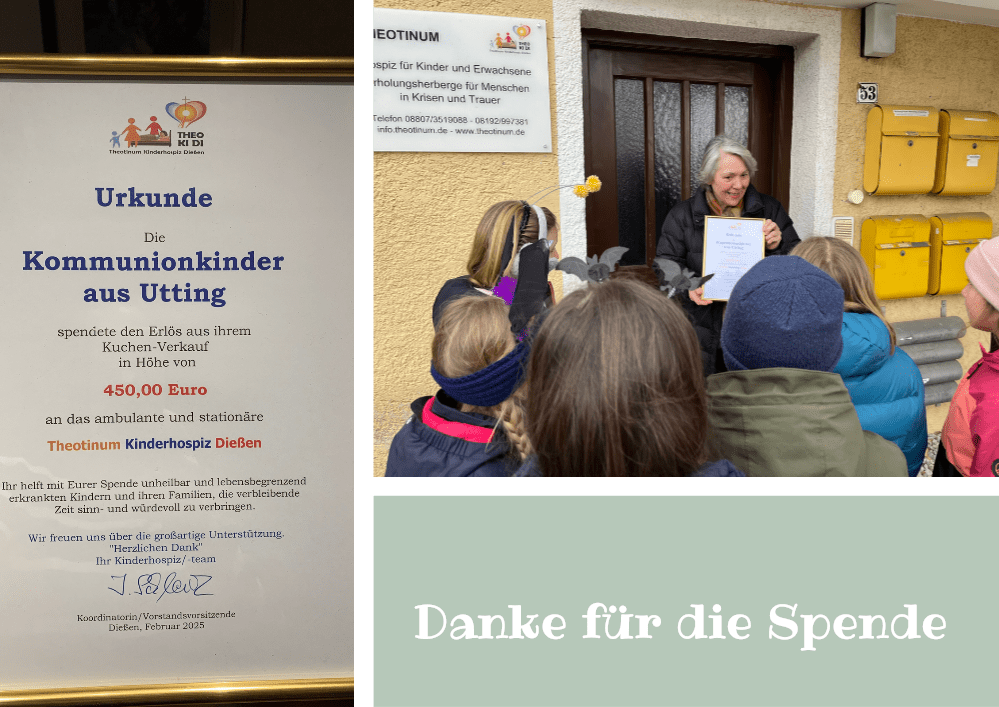 Der Theotinum Verein Dießen e.V. unterstützt die Hospiz- und Trauerarbeit mit dem ambulanten und stationären Kinder- und Jugendhospiz Greifenberg. Der „Theotinum Verein“ bedankte sich herzlich und überreichte den Kindern eine Urkunde.