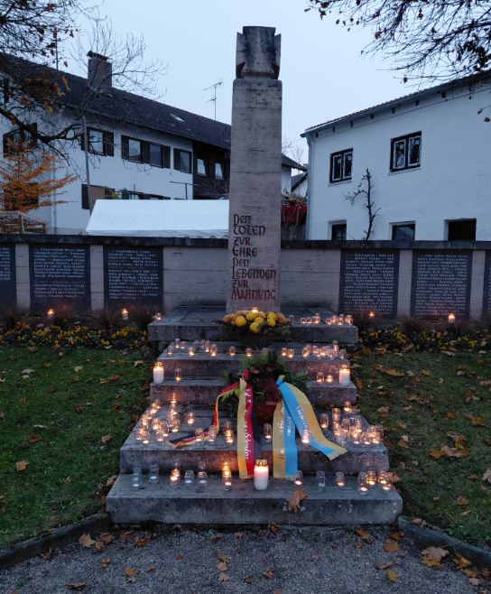 In Utting fand am Nachmittag des Volkstrauertages eine sehr stimmungsvolle und würdige Veranstaltung am Kriegerdenkmal mit Friedensgedenken statt: „Weil Frieden mehr braucht als Erinnerung“. Die Veranstaltung wurde gemeinsam gestaltet von der Gemeinde Utting, der katholischen und evangelischen Kirchengemeinden mit Unterstützung durch die Blasmusikfreunde, die Liedertafel, den Jugendchor und den Fahnenabordnungen der Uttinger Vereine.