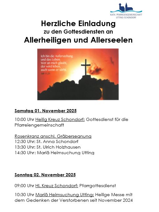 10:30 Uhr Mariä Heimsuchung Utting: Heilige Messe mit dem Gedenken der Verstorbenen seit November 2024.