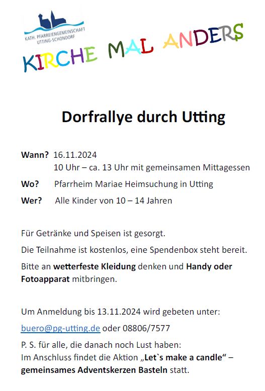 Dorfrallye durch Utting für alle Kinder von 10 – 14 Jahren