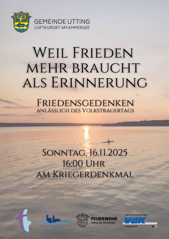 Der Gottesdienst anlässlich des Volkstrauertages findet am Sonntag, 16. November um 9 Uhr in der Kirche St. Anna in Schondorf statt. Anschl. erfolgt die Kranzniederlegung am Kriegerdenkmal am Friedhof.